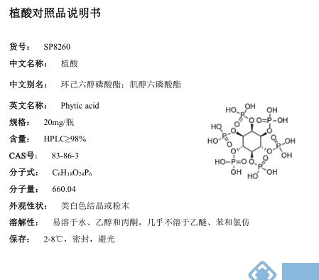 产品名称: 植酸标准品